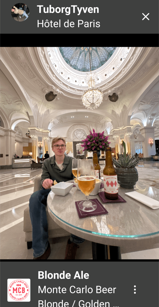 Actually, ChatGPT rather overplays its hand; it’s more like 21 euros your Heineken in the American Bar, which presumably is what TuborgTyven spent on his Untappd check-in.