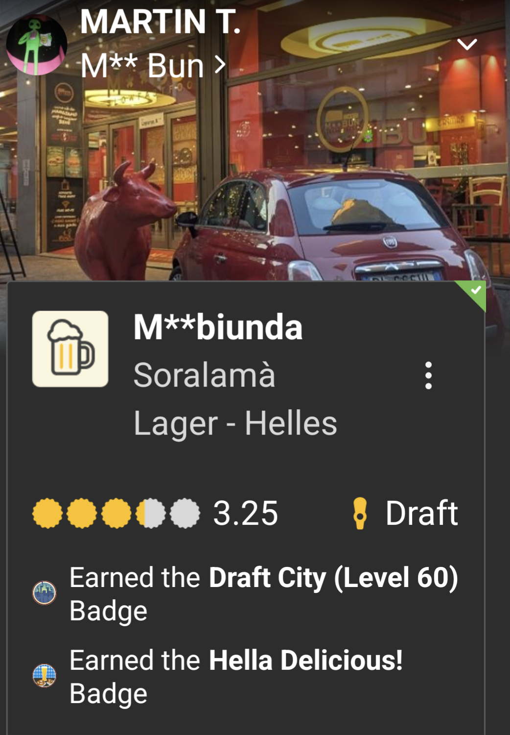 The disappointment in finding the city’s highest rating brewery/skatepark/burger bar didn’t start flipping till 6pm on a Friday was palpable, but luckily Google recommended the small chain of M** Bun*, with a branch a few streets away.
