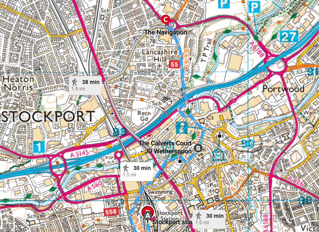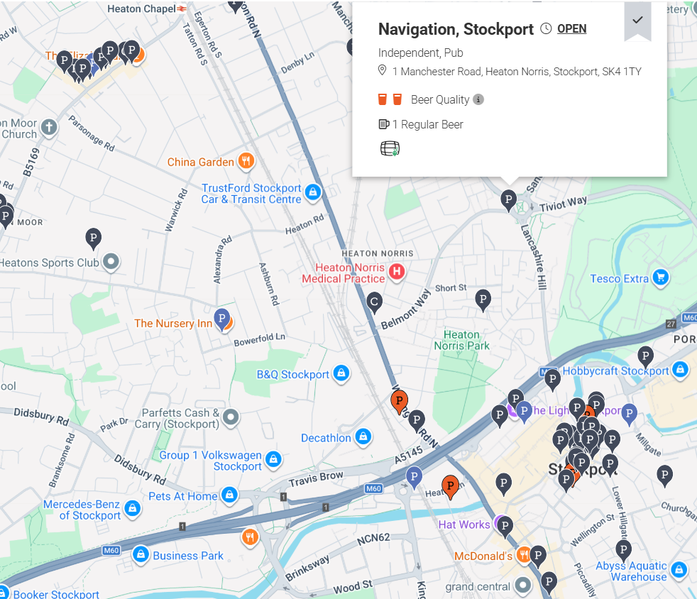 As you’ll see, a flood of pubs in Heaton Moor and Stocky centre,