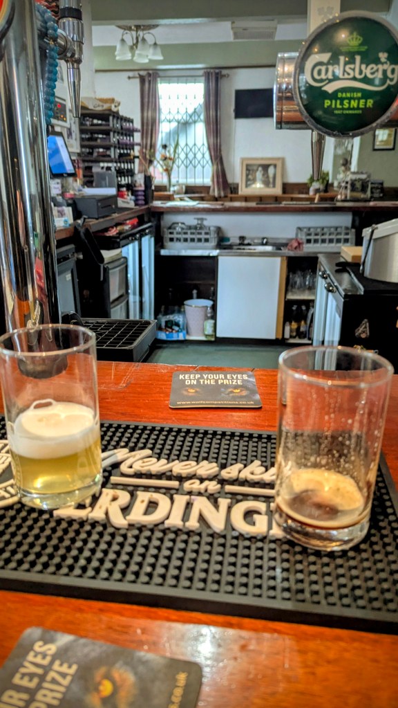 The landlady, as cheery as you’d hope, offered tasters of the two Beartown cask beers. “A pint’s a taster !”. I didn’t want to cause a scene by refusing.