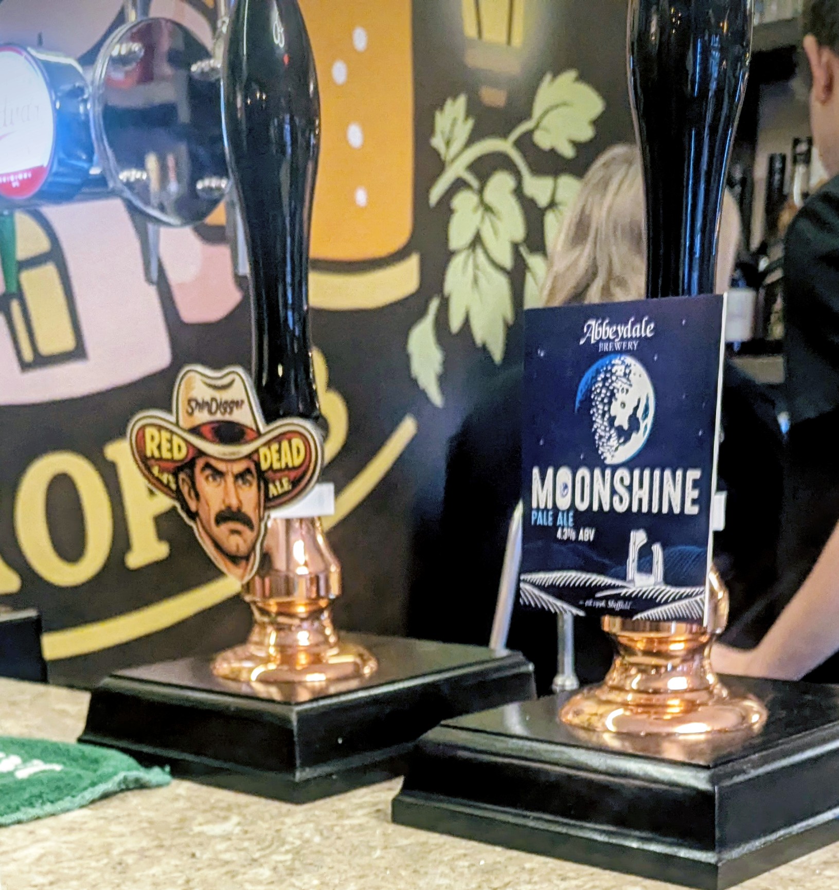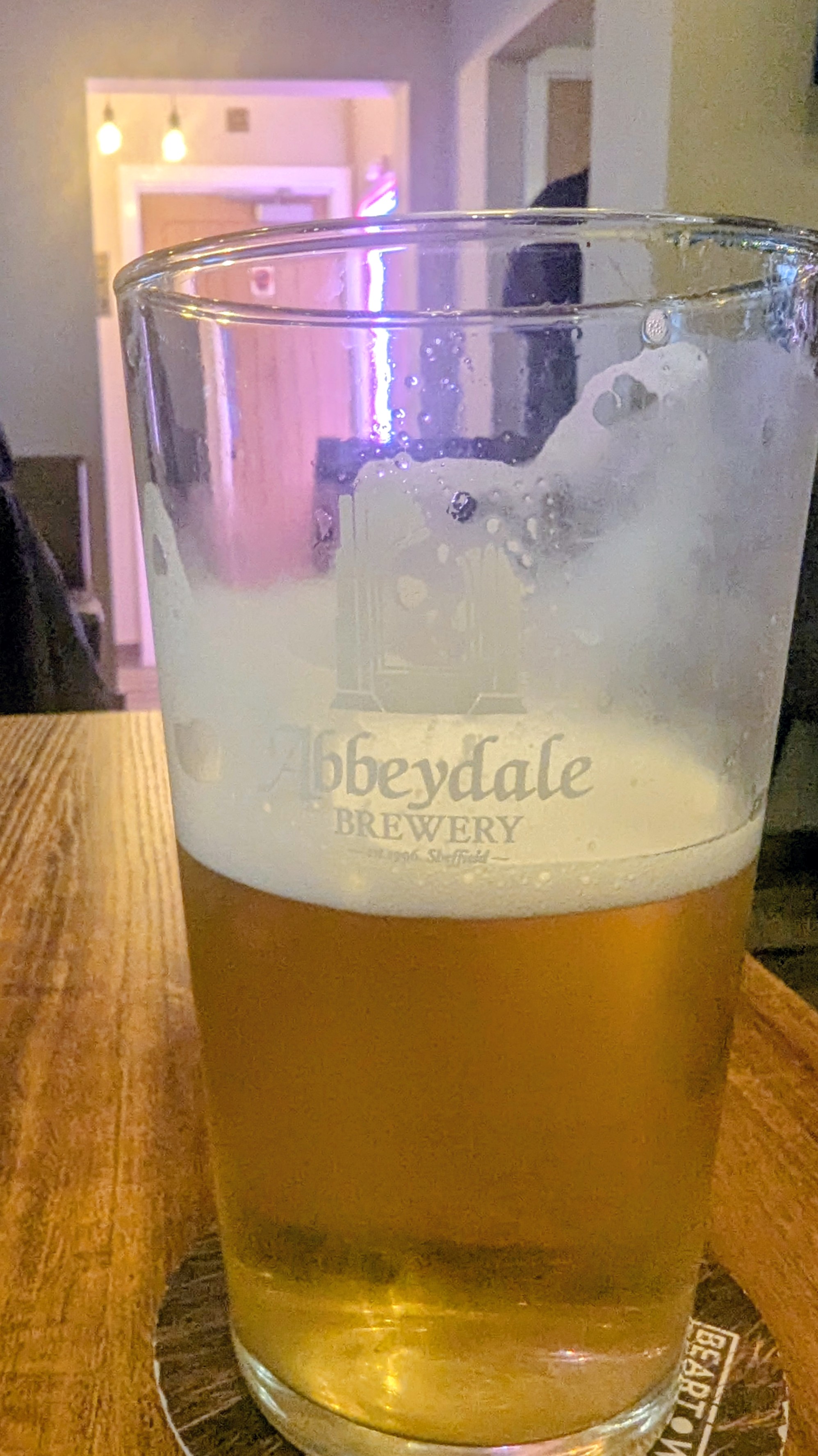 And it’s a cool and foamy Abbeydale in branded glass which was good enough and might have tasted even better if I hadn’t had to stand (not complaining) and also hadn’t just noticed the price. £5.80 for Moonshine, more expensive than the Deya Pils.