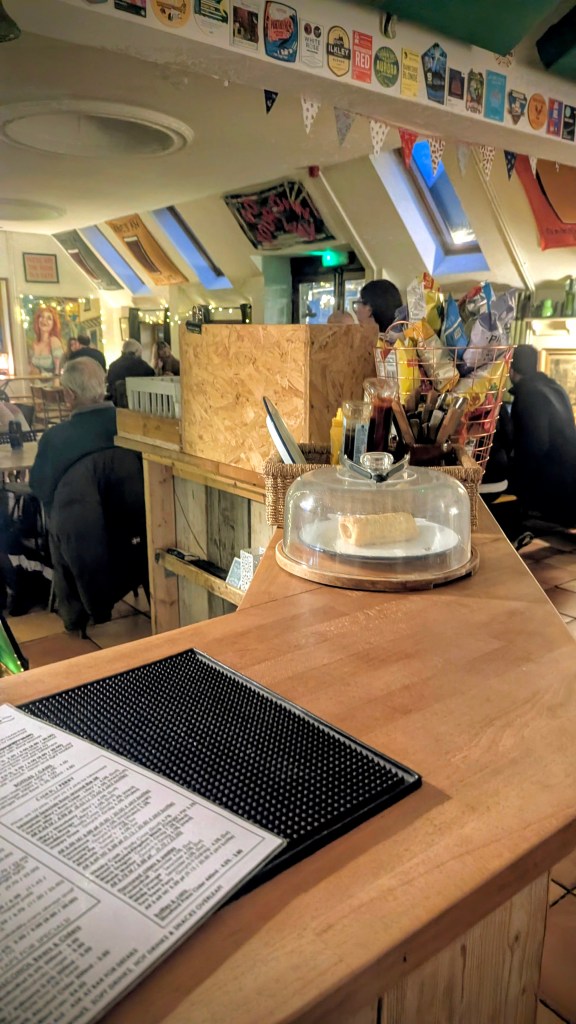 and tonight the beer (Raven Song Stout NBSS 4) was the star, along with a young barman who couldn’t quite tempt me to the sausage roll,
