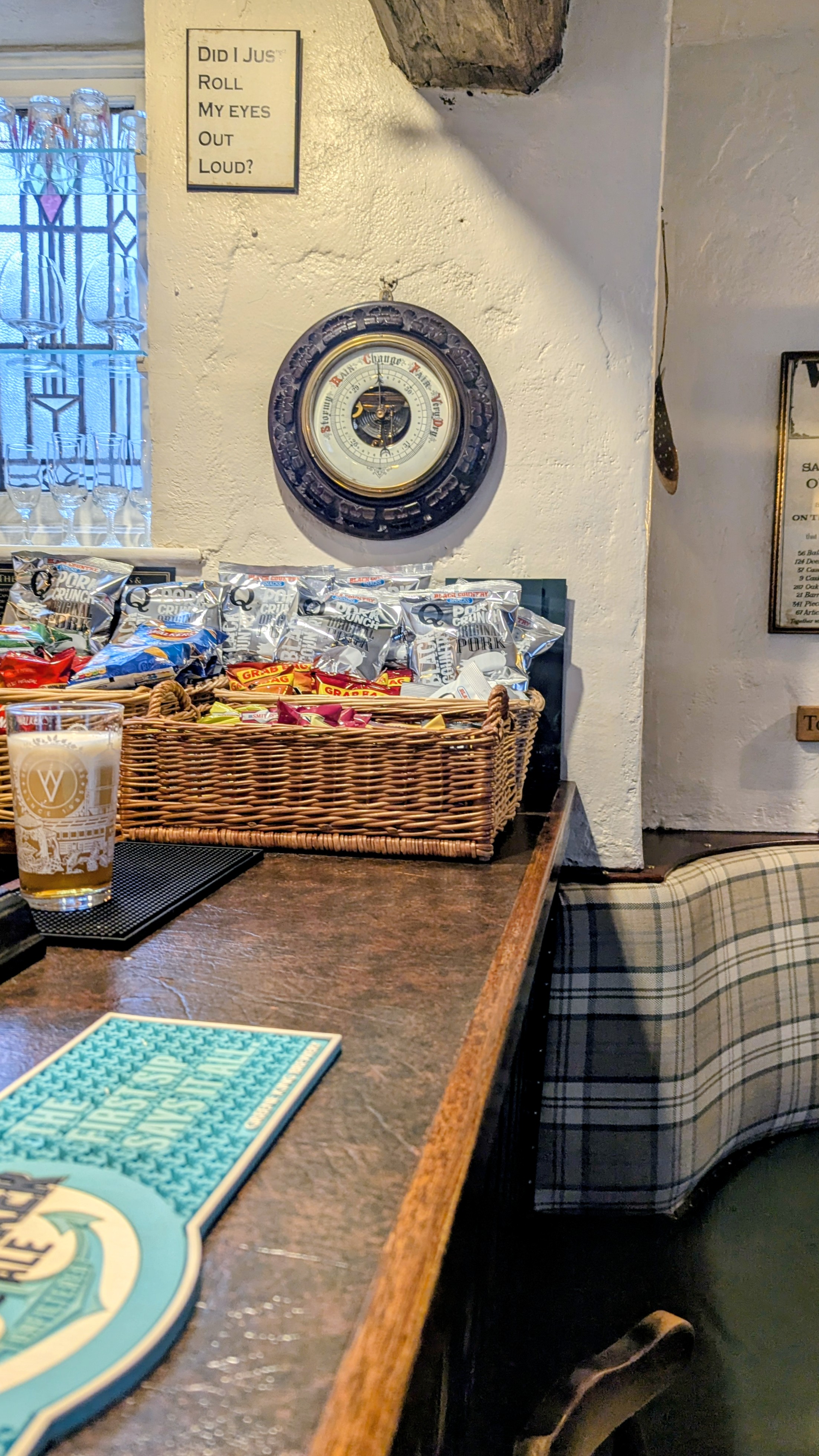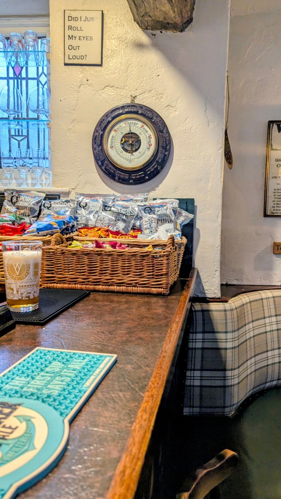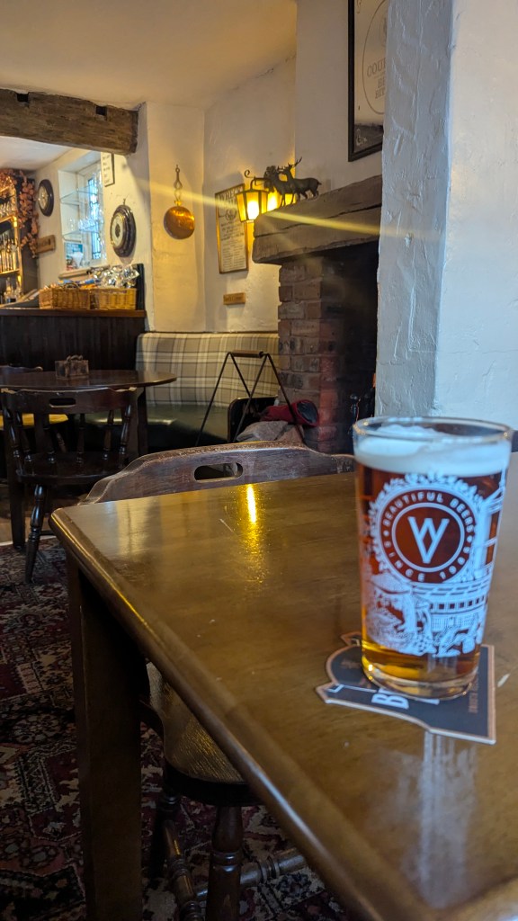 I ask the landlady what the chap in front (Mr 3:59) is drinking, she says “They’re all good !“, and I suspect they are; the Butty Bach is cool and creamy (NBSS 3.5).