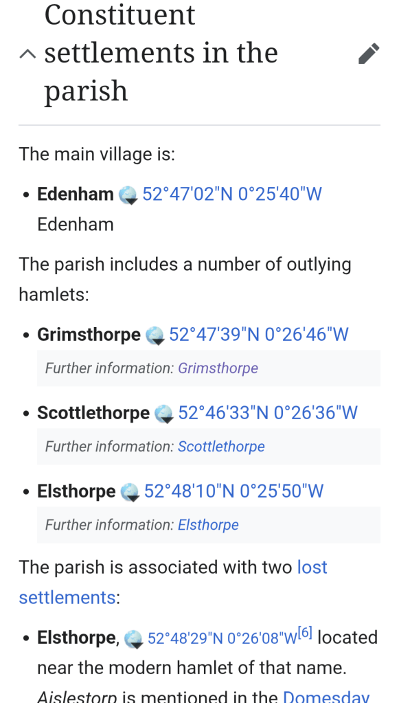 But I know everything about Edenham now. 291 souls, 3 constituent hamlets, 2 lost settlements,