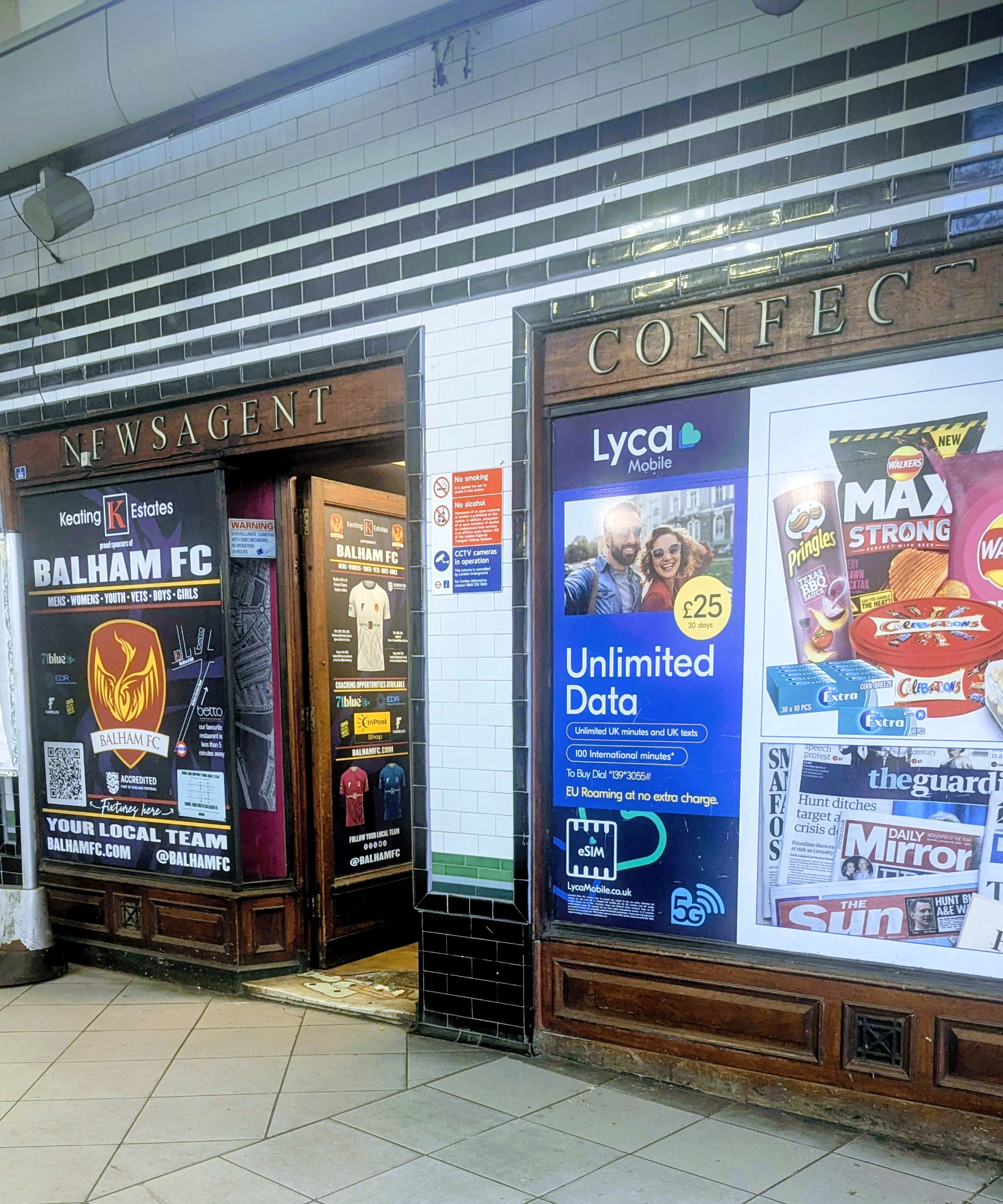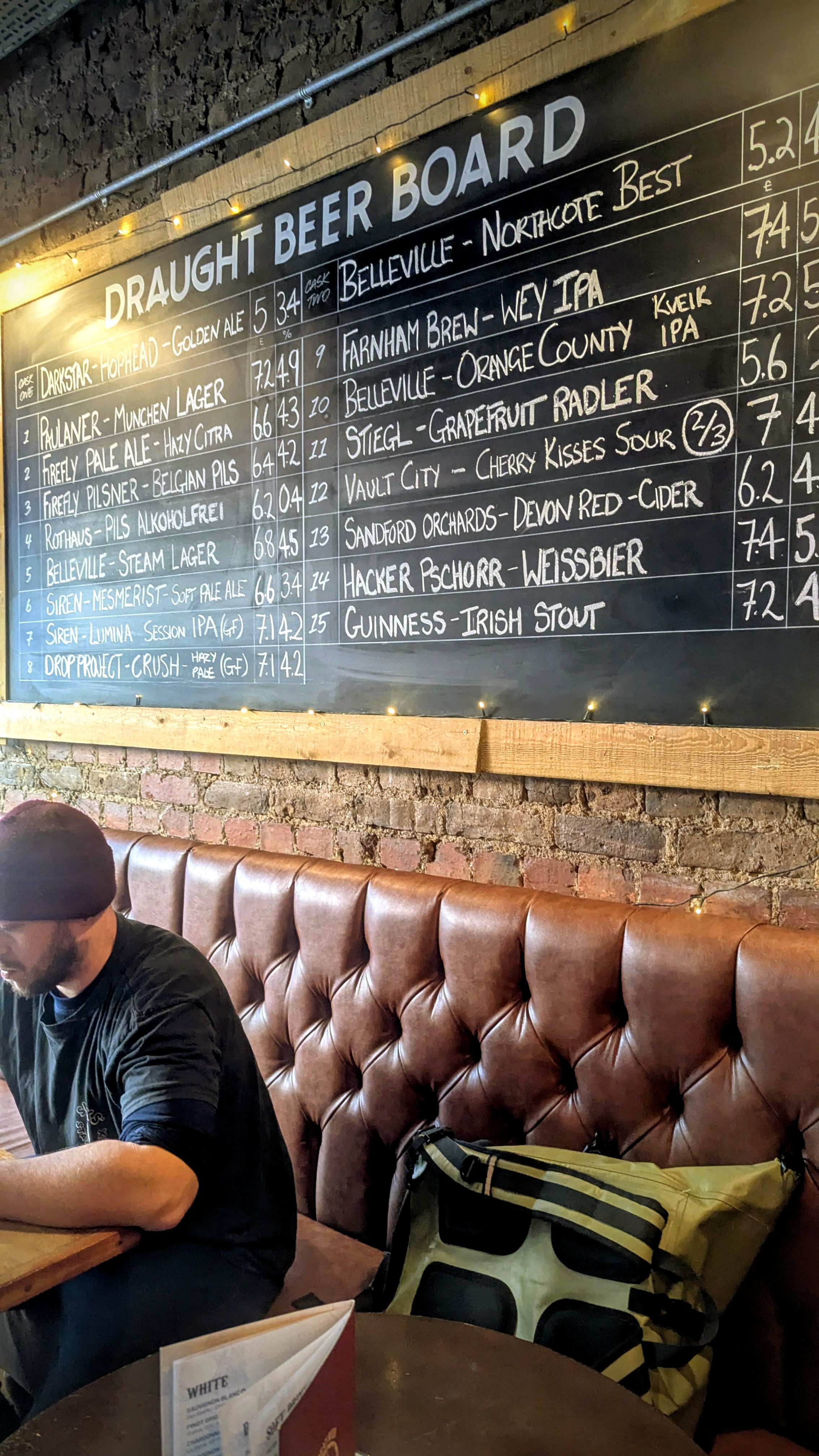 A second London pub tick in quick succession, the Southeastern service presumably making a request stop just for me at Balham, where I had a restorative double espresso in a cute station obssessed with the local football team.