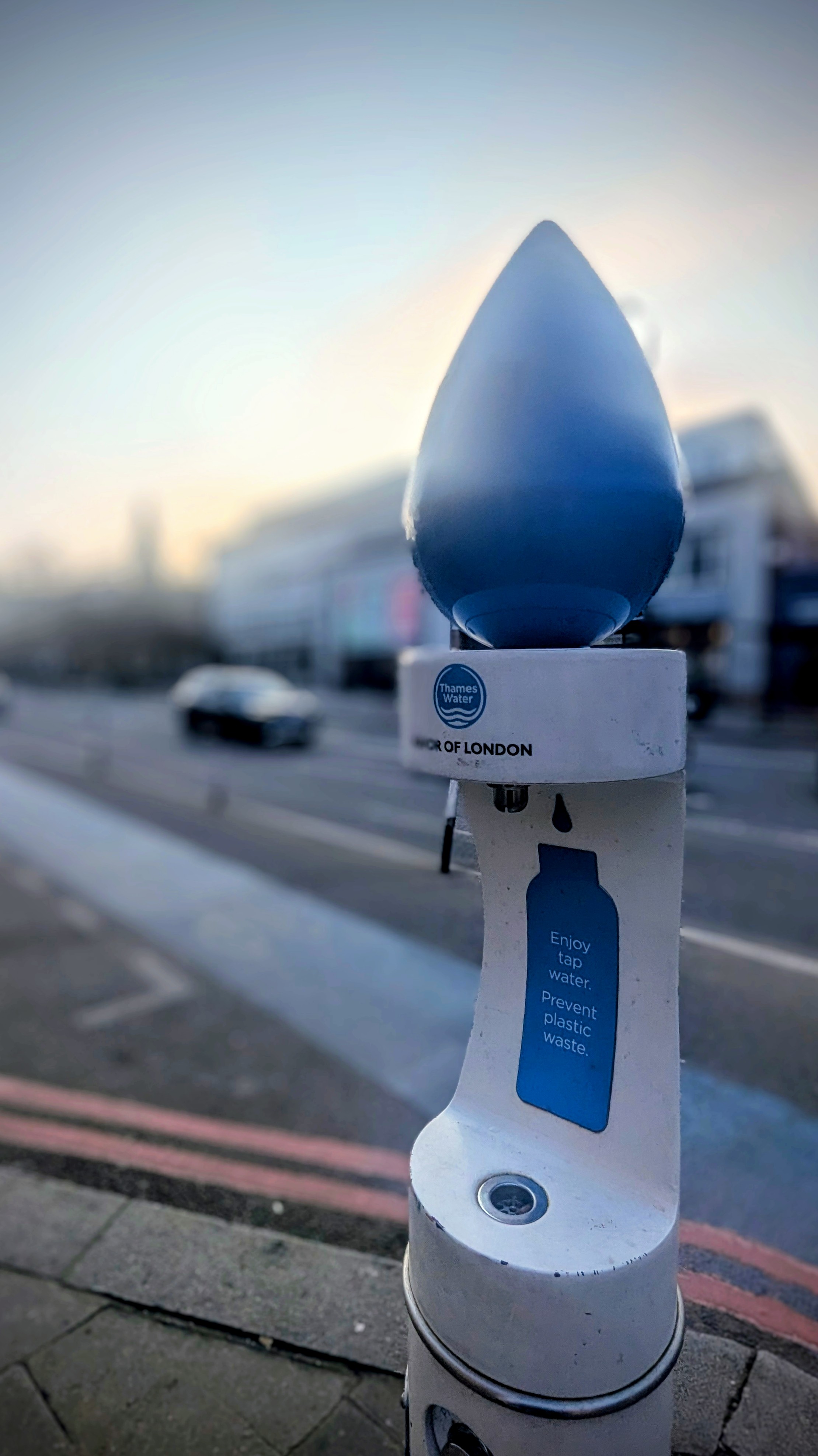 a scary street water dispenser (I overfilled my espresso cup, very badly),