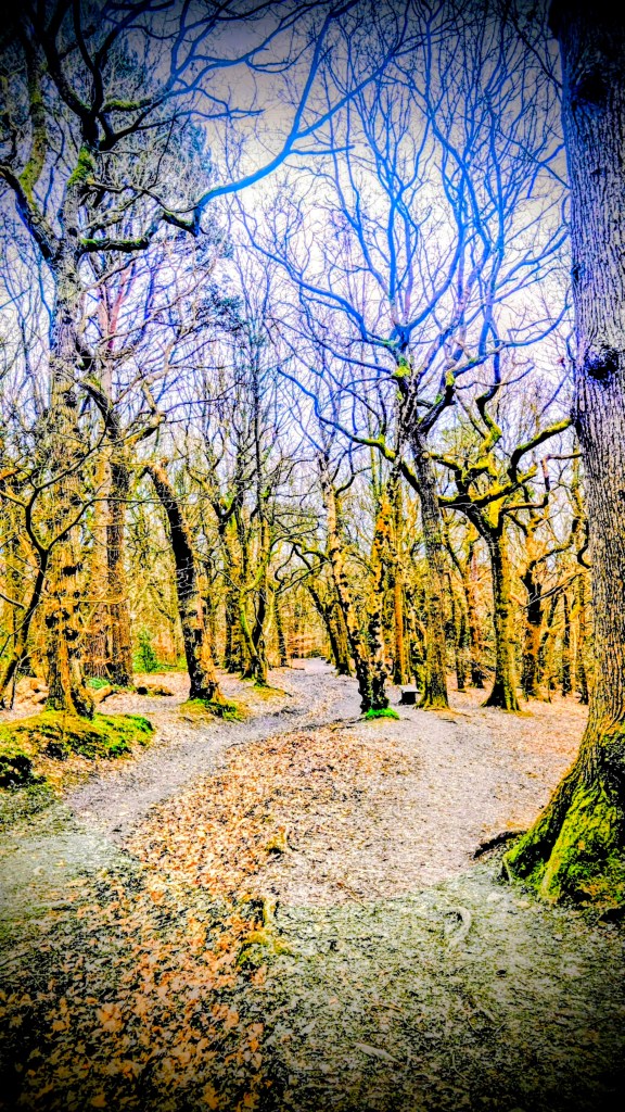I’d bought an advance rail ticket from Dore back to Sheff for Β£1.30, so had to dash through Eccleshall woods, which did a good impression of being menacing.