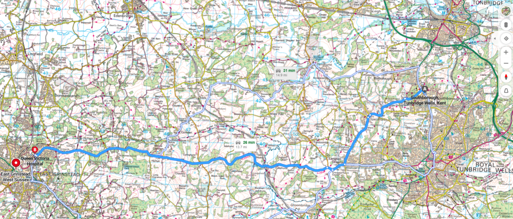 Our weekly trip from Sheffield to Waterbeach was followed by the monthly mercy mission to Kent, where we took father-in-law over Sussex border to the Queen Victoria Hospital in East Grinstead for essential maintenance.