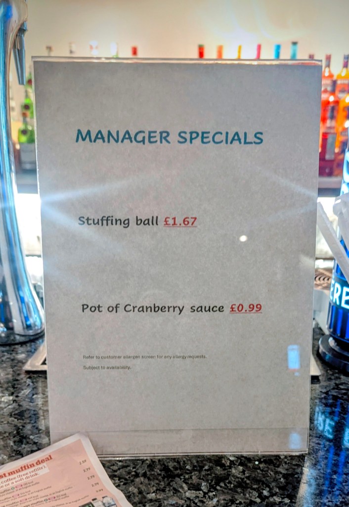 The “manager special”, normally yesterday’s curry or Punk IPA sold off for a quid, is intriguing;