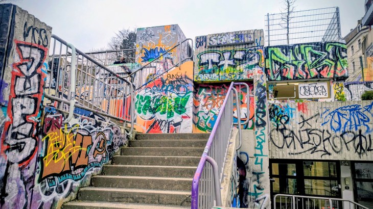 but those steps lead to some of the most attractive town houses, and a view of the Hip Hop mural.