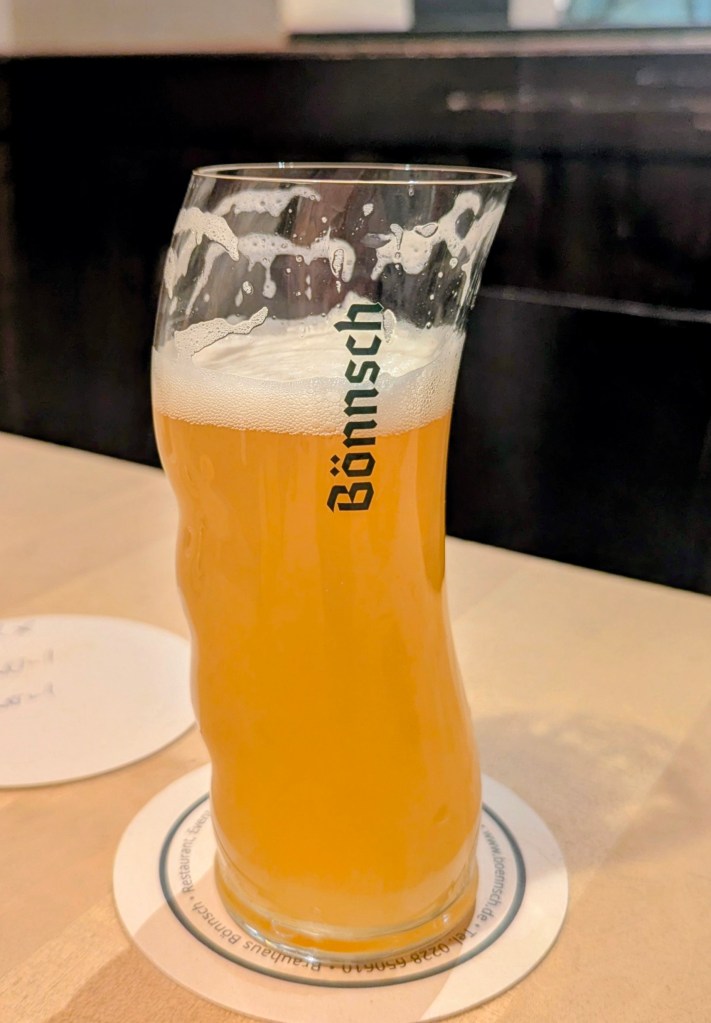 At Brauhaus Bonnsch you go for the cloudy Kolsch in a weird vessel that’s vaguely reminiscent of that Lees glass you stole in 2016.