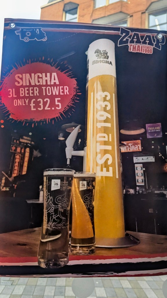 where we somehow resisted the 3 litre tower of Singha in favour of the diet Coke that comes with the meal deals.