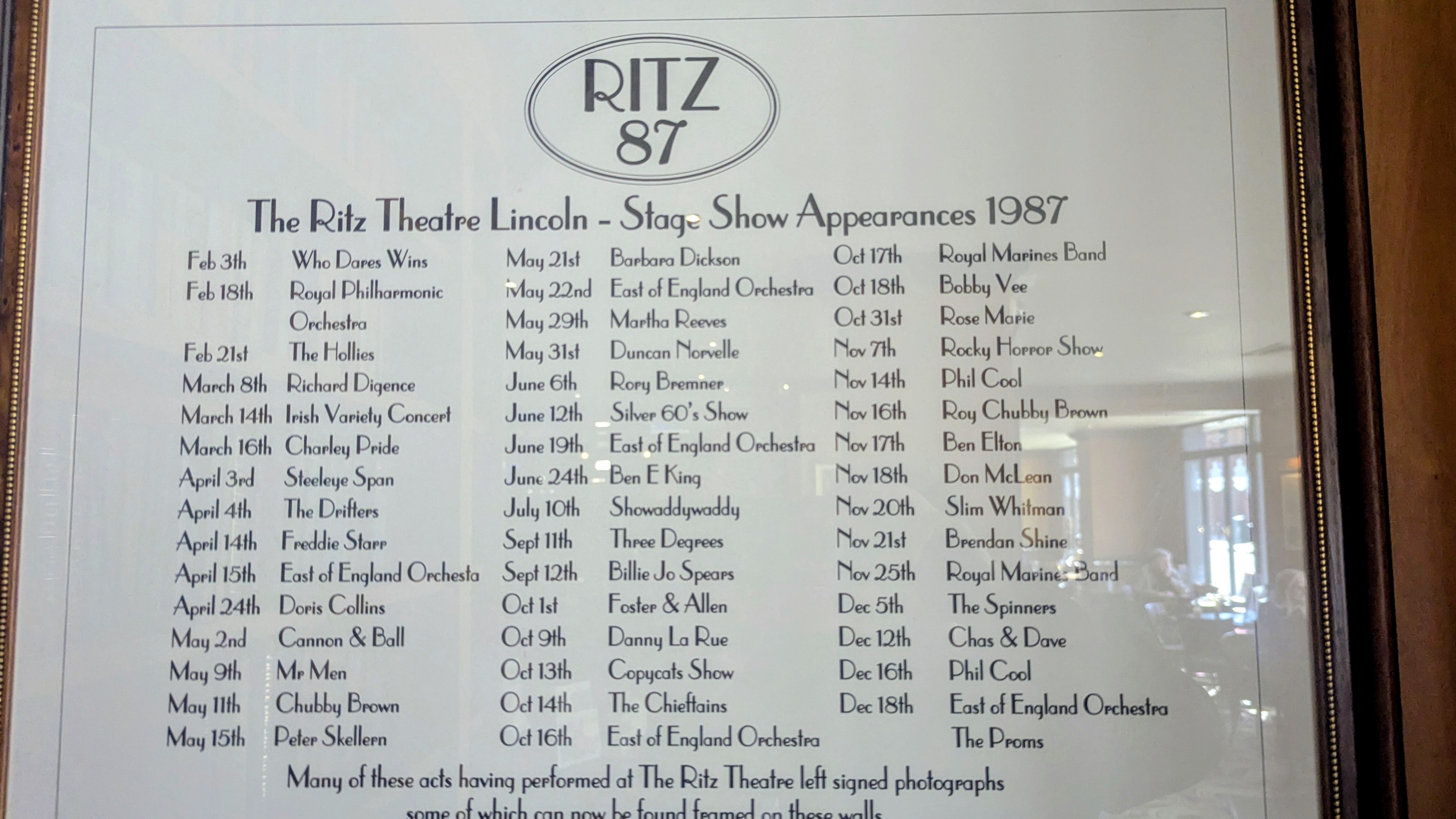 But I did eat there, and admired the list of the greats who graced the Art Deco theatre as cinema attendances dwindled.
