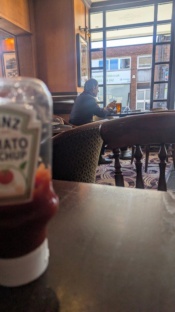On his return, an Old Boy had moved the coat, plonked himself down and put his own pint next to the half drunk one. The mild altercation on the return of the first bloke was priceless (actually, £5.39). Had it been two women you’d be reading about it on MumsNet tonight.