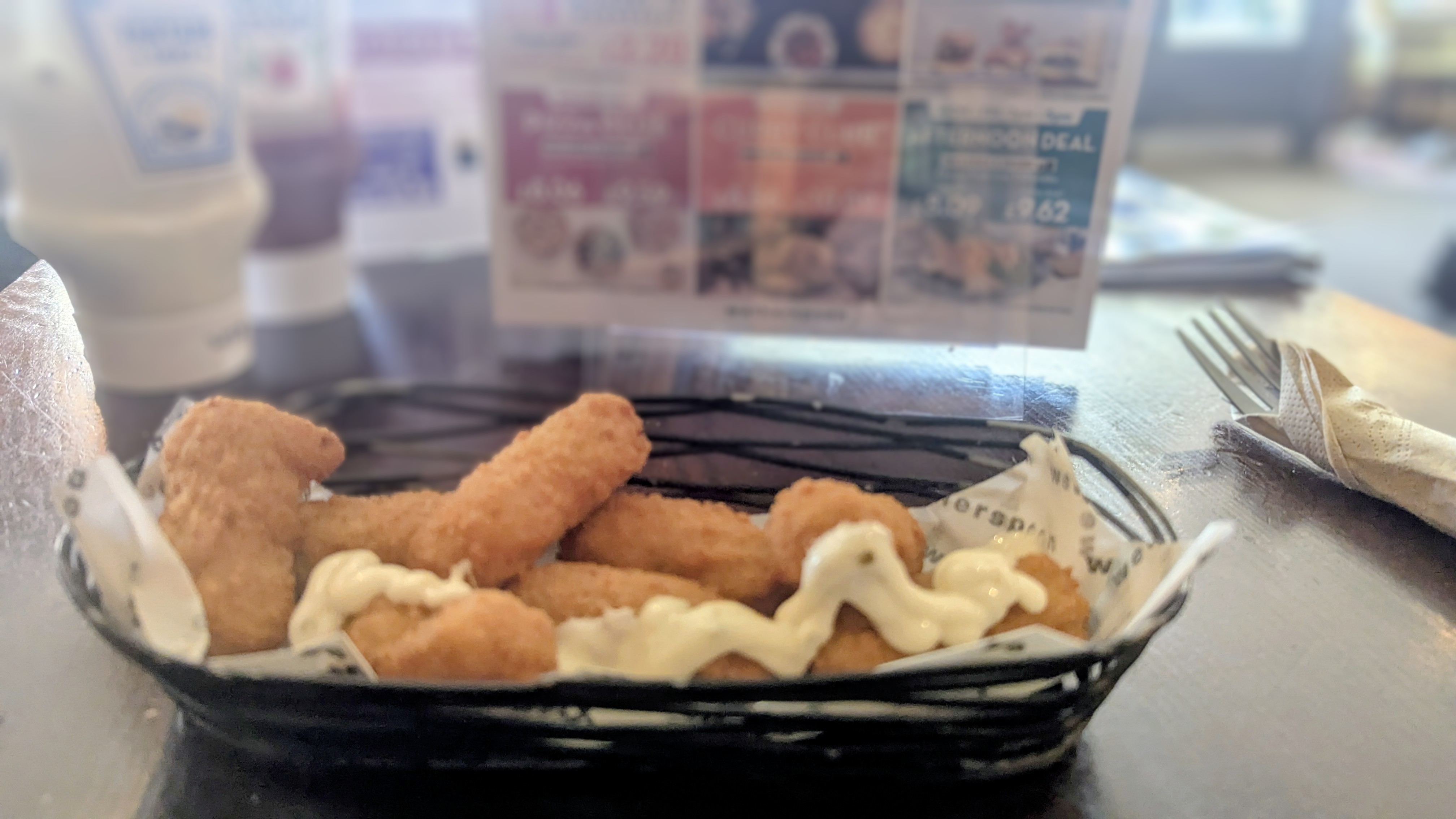 I’m not claiming this as a life hack, but eight Whitby scampi for £5.39 from the “Sides, extras and sauces” menu is the way to go, smothered in French tartare sauce. Who knew the French made anything useful ?