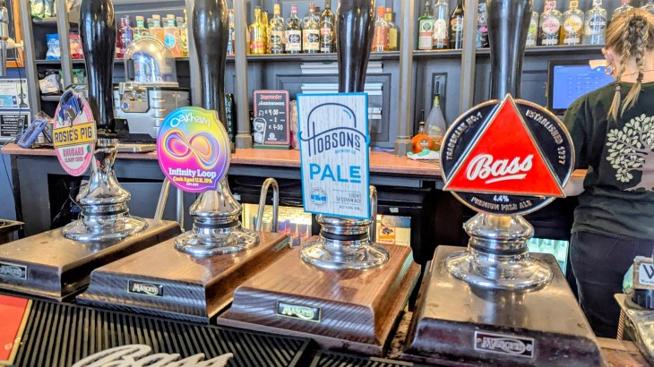 with custom from a diverse mix of Stirchley folk far removed from the fairly blokey atmosphere I recall from two decades ago. My notes say “3 toddlers, 1 soda water and lime, 1 lemonade, 1 purple fruit shoot, 1 Carling“.