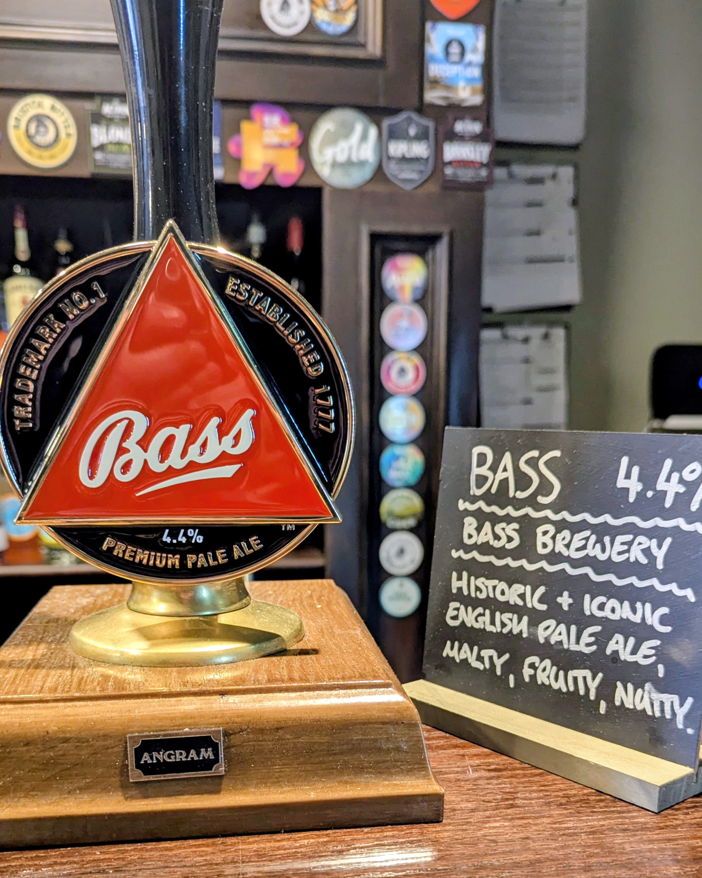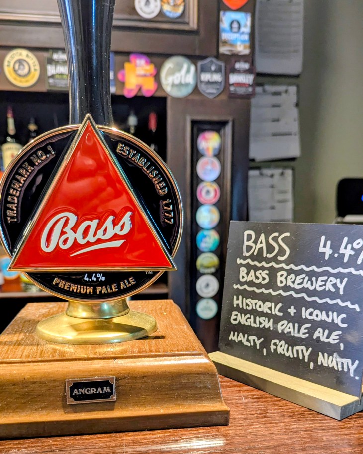 In a world where “ever changing real ales” is seen as A Good Thing, my question as whether the red triangle might seem a bit odd. Rotating beers, apparently, but the young guy knew about the Bass Facebook page so there’s hope.