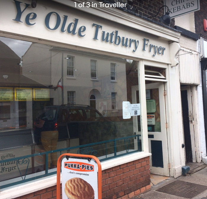 I contemplated an early, calorie controlled lunch from Ye Olde Tutbury Fryer,